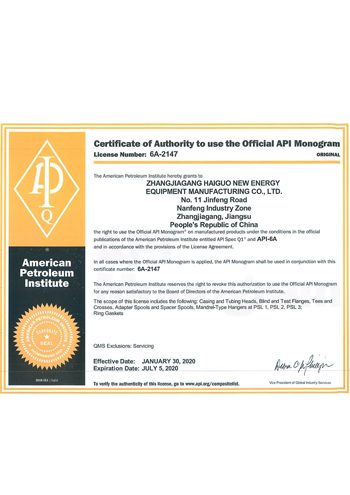 公司取得了美國ABS、法國BV、中國CCS、挪威DNVGL、韓國KR、英國LR、日本NK、意大利RINA等全球八大船級社的工廠認證證書,建立了完善的產品質量管理體系。先后獲得了美國API20B資質證書、API6A資質證書、APIQ1體系證書、TPG的NDT認證證書、TPG 熱處理認證證書、歐盟PED等認證證書,同時也通過了一些國際客戶具有高度專業要求的資格認證。